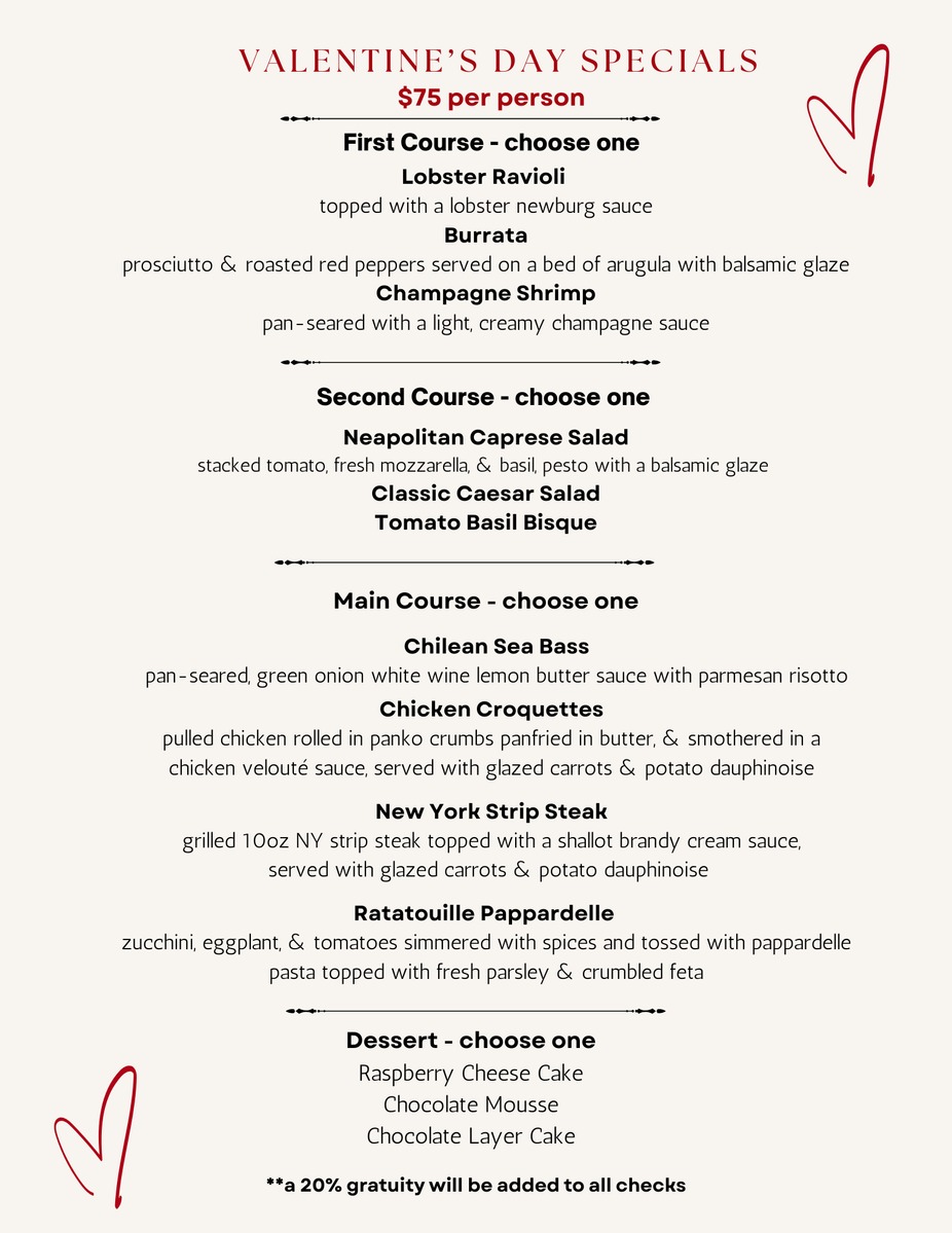 Treat your Valentine to an unforgettable evening at EMRY’s Garden 🍾💌 Celebrate Valentine’s Day with our special four course dinner for $75 per person. ♥️ 💌Reservations are required and available on our website! We can’t wait to host you.